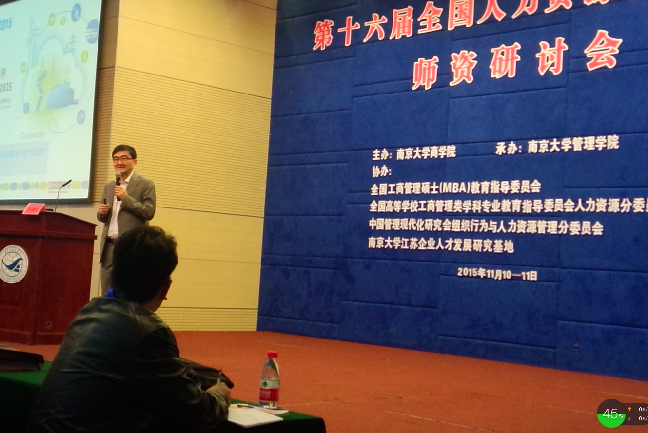 由全国工商管理专业学位研究生教育指导委员会、教育部高等学校工商管理类学科专业教学指导委员会、中国管理现代化研究会组织行为与人力资源管理分委员会、南京大学江苏企业人才发展研究基地委托,南京大学商学院主办,南京大学管理学院承办的第十六届全国人力资源管理课程师资研讨会20151110-12日在南京大学圆满结束。本次会议吸引了来自厦门大学、西南大学、浙江大学、兰州大学、上海交通大学、西安交通大学、william威廉英国官网等一百多所高等院校150多名人力资源管理的教师、学者参加研讨。我作为william威廉官网MBA及工商管理本科人力资源管理课程主讲老师受邀参加了本次研讨会,现将两天会议的收获与大家共享。
