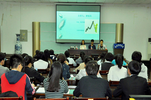 顺利进入内蒙古国税局的张晓宇、考取天津市国税局的唐旭东及高占宇分享了他们在考取公务员时的努力历程和面试技巧,给大家提供了一个优秀的求职模板。唐旭东主要介绍了申论写作的技巧,他建议学弟学妹们在平日里要多做真题训练以了解申论文风,同时要注重素材的积累。他特别强调了申论的文风不同于学术论文,也不同于文学性文章,而是介于二者之间。写作时,大家要注意语言朴实严谨、多用排比句以体现政府公文的气势。至于文章内容,则要注重突出“如何解决问题”。高占宇及张晓宇就面试部分给同学们做了全面而生动的讲解,从面试前的准备事项到面试时面对各种情况该做何种反应、如何给考官以满意答复等一一详细地讲解。细节决定成败,在面试时,尤其要注意细节和礼节,给考官以良好的印象。