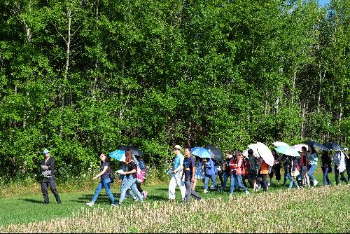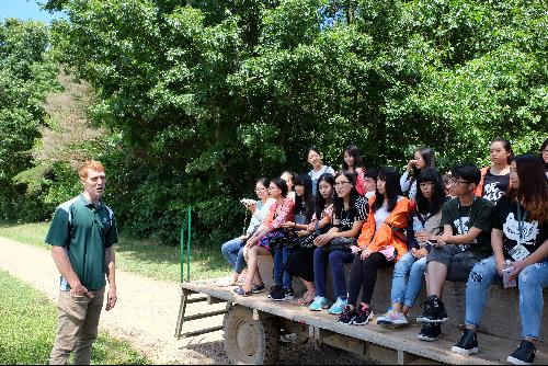 8月1日下午,访学团来到密歇根州立大学Kellogg Forest实验站进行实地参观学习,坐着原始的木板车一路载笑载言,Mr. Patrick Duffy带领大家沿着小径走进森林深处,亲身感受了MSU正在进行的森林管理技术实验,包括用篱笆围起来的真菌实验林用以提高植物的抗性,人为控制灌木大量生长以保护目标树木等。大家被森林里各种各样的树木和Mr. Patrick Duffy绘声绘色的讲解所吸引,最后Mr. Patrick Duffy送给每位同学一瓶实验站自产的枫树糖浆。深入丛林近距离观察植物进一步激发了同学们对森林管理和农林经济知识的兴趣。