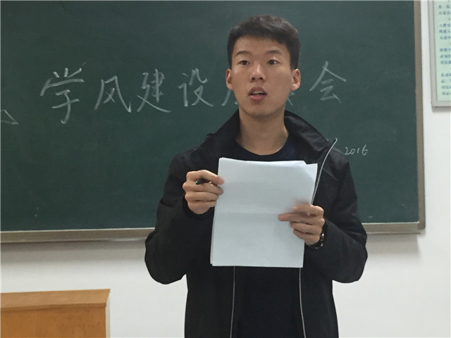 辅导员丁坤宣读学校政策文件