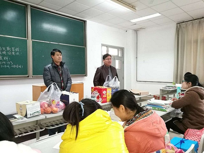 最后,辅导员老师将学院科学且精心准备的营养品分发给同学们。面对老师们的亲切关怀,同学们非常感动。会计学专业刘硕同学表示定将不负厚望,全力以赴,迎战考试;金融学张鑫优同学说,“现在正值考研的关键冲刺期,学院领导老师们的重视和关怀将化为一剂强心针,让我们更加坚定信心,勇敢赴考。”