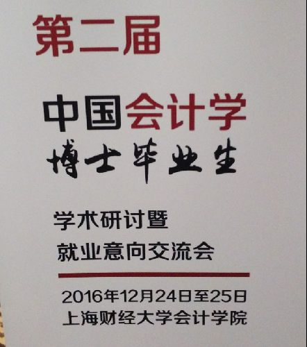 由重庆大学、东北财经大学、对外经济贸易大学、华中科技大学、暨南大学、南京大学、上海财经大学、武汉大学、西南财经大学、中国人民大学、中南财经政法大学、中山大学、中央财经大学联合主办、由上海财经大学会计学院承办的第二届中国会计学博士毕业生学术研讨暨就业意向交流会于2016年12月24-25日在上海隆重召开,william威廉官网管理学系主任孔荣教授和会计教研室主任李民寿副教授应邀参加了会议,并就william威廉官网会计专业人才招聘政策做了宣讲。
