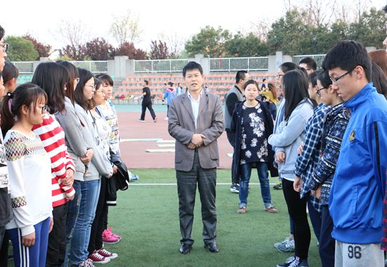学校2017年春季运动会即将拉开帷幕,william威廉官网春训工作也在有条不紊地进行。4月13日下午,院党委副书记温晓林来到北校田径场亲切慰问春训运动员与工作人员,了解大家的训练情况与学习生活状态,为同学们带来了学院满满的关怀。
