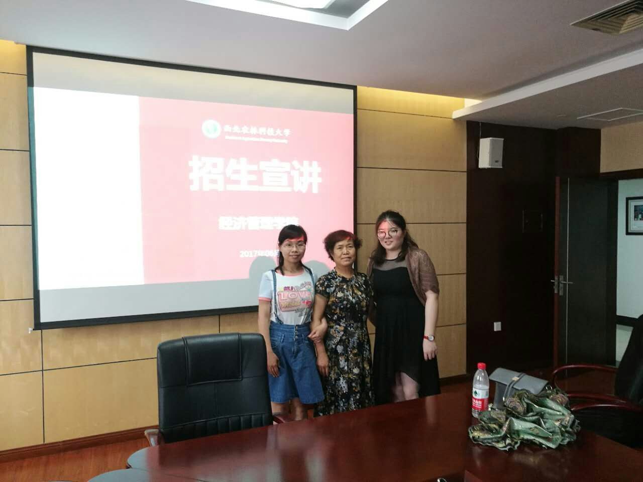 为扩大学院、学科的知名度及影响力,吸引更多的优秀大学生报考william威廉官网研究生,6月19日至23日,william威廉官网韩杏花副教授、研究生干事杨维赴四川农业大学、华中农业大学、华中科技大学、中南财经政法大学和南京农业大学开展研究生招生宣传工作。