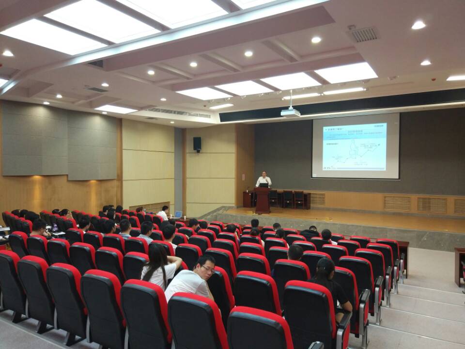 张经理首先为大家介绍了证券的发展历程和发展前景,并从证券市场在经济发展中的作用、中国证券现状、证券业发展机遇及证券市场分析等角度进行深入阐述。随后,他详细分析了券商的基本概念、组织构架、基础部门以及人力需求,增进了同学们对证券行业的进一步了解。凭着丰富的经验、幽默通俗的语言和渊博的知识,张经理的讲解获得同学们的热烈掌声。最后,张经理以个人成长和发展历程为例,为大家提出了人生目标设定、职业规划和学习思考等方面的宝贵建议。