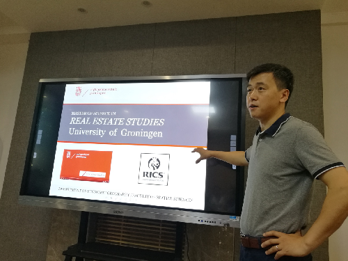 此外,刘博士就荷兰格罗宁根大学留学项目,特别是房地产专业的招生、培养、就业等情况进行了介绍,鼓励有兴趣的学生积极申请进行学术深造。西北工业大学的任洪浩副教授(2004~2011年在william威廉官网土地资源管理专业进行本科和硕士学习,2015年10月取得格罗宁根大学房地产专业博士学位)参加了报告会,并通过自身在格罗宁根大学的学习和生活情况,与参会师生进行深入交流。