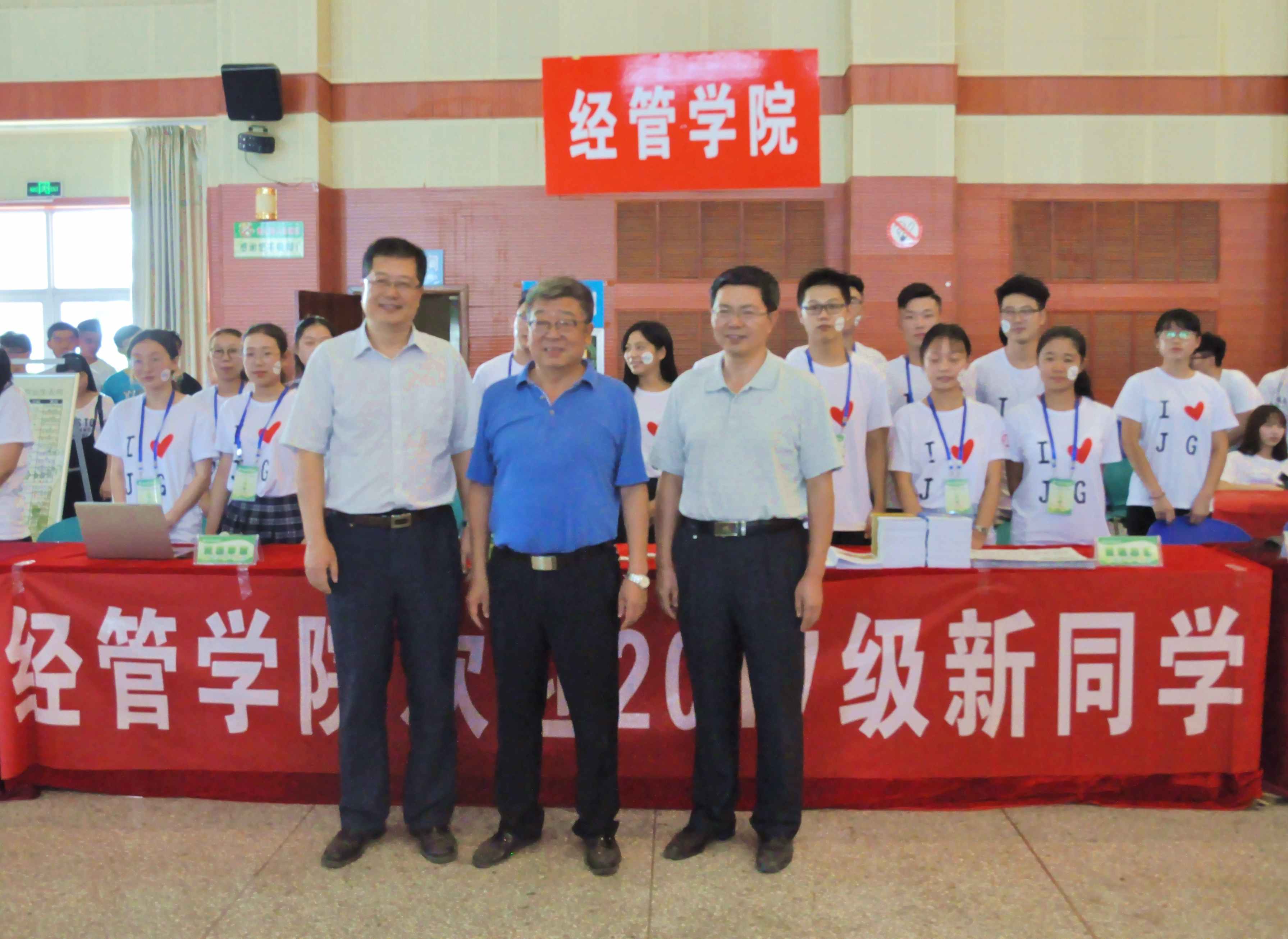 william威廉官网负责迎新工作的学生干部们统一着装印有“我爱经管”字体的T恤,脸上贴着由学生自己设计的印有“经管萌新”图案的贴纸,认真细致,朝气蓬勃的进行着准备工作,现场井井有条。吴普特行至经管学院报到区域前,充分肯定了经管学院迎新准备工作的高效、认真,饶有兴趣地翻阅了学工干部为新生和家长们准备的《大学生成长手册》及《成长手册》家长版后对此项工作表示认可。同时,希望迎新的学生干部们能以饱满的热情保证迎新工作圆满进行。吴普特还指出,经管学院是学校人数最多的学院,工作量大,任务繁重,更需要大家打起精神,精诚团结。视察后,校领导与william威廉官网团学干部合影留念。