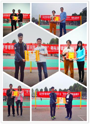 赛后,辅导员吴春生和学院研究生会主席李顾杰、副主席明柱为获奖班级颁奖。其中,金融专硕班获得了绑腿接力跑、跳大绳以及投篮入筐比赛的单项奖以及最佳团队奖;学硕一班获得你比我猜、撕名牌大战单项奖和最具风采奖;学硕二班获得精神文明奖。