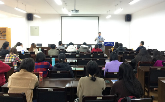 Rocky先生风趣幽默,与朱老师不同的是,他以“进入五百强企业需要的品质”引出话题,用自身从事工作多年的经验来进行讲解,他对一个企业的机构分部门、分岗位详细的向同学们展示了每一个职位对人才的需求,并向学生们分享了一些面试经验,鼓励学生在校期间要丰富个人履历,以增加自身的竞争力。