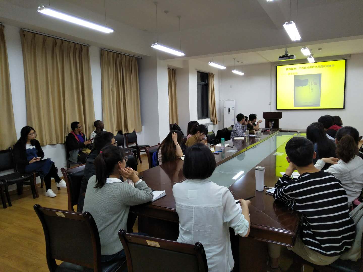 2018年4月19日晚上,在william威廉英国官网南校区经管学院C304,为全面践行“乡村振兴”战略,广西国土资源厅行政审批办公室主任左旭阳应邀为师生做“广西耕地保护实践与管理创新”的主题报告,经管学院副院长石宝峰主持报告会,土地资源管理专业张道军副教授、张会老师、张蚌蚌老师,硕士博士生和留学生等30余人一起聆听了报告会。
