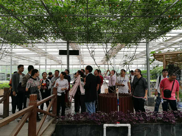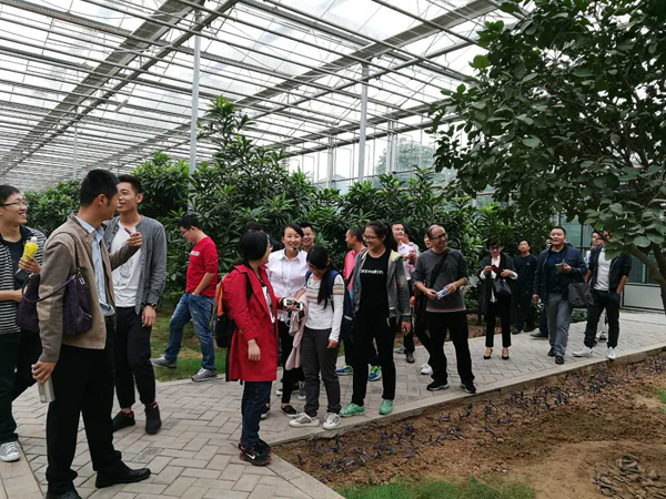 杨凌现代农业示范园区创新园,占地面积1300亩,园区以展示国内外农业及其相关学科高新科技和创意农业的新成果、新技术为内容,是杨凌农业高新技术产业示范区七大功能区中的重要组成。学员在园区讲解的引领下,依次参观了园区的工厂化育苗馆、梦幻花卉馆、无土栽培馆、现代农业创意馆、西部特色馆、超级菜园、南方果树馆等现代农业技术展馆。精准化生产调控的水培奶油生菜,以气生根装饰走廊形成的“一帘幽梦”,连续多年生长的辣椒树,“南果北种”的柚子、火龙果,高高耸立的沙漠强者“量天尺”,都带给了学员巨大新奇。在参观的过程中,学员们认真学习,对感兴趣的问题与在场工作人员进行了积极互动。