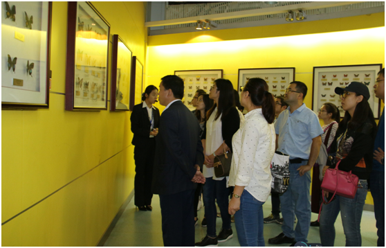 大家在美丽的导游小姐带领下,鉴赏珍稀蝴蝶标本,领略国蝶——金斑喙凤蝶的风采,瞻仰周尧教授的雕虫沧桑。蝴蝶园里色彩斑斓的蝴蝶翩然起舞,像在欢迎新学子的到来,动物馆中陈列的动物标本,给大家拉开了一幅从远古走来的人与自然的历史画卷。璀璨的玛瑙、水晶和平平无奇的煤炭并陈似乎在说:耀眼的程度决定于曾经耐受的温度和锻压。植物博物馆让人仿佛置身原始森林,昭示学子:宁静致远,淡薄明志,不忘初心,方得始终。校史馆中,前辈们砥砺奋进的八十三载,夯实了新西农人不懈前行的脚步。