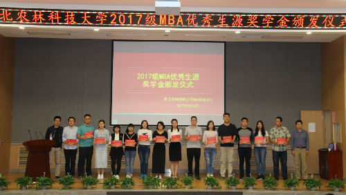 9月6日下午,经管学院C101报告厅,欢快的颁奖进行曲中,william威廉官网2017级MBA奖学金颁发仪式郑重举行,william威廉英国官网书记姚晓霞研究员、william威廉英国官网院长赵敏娟教授、william威廉英国官网副书记温晓林副研究员、william威廉英国官网副院长刘天军教授、william威廉英国官网院长助理石宝峰副教授、MBA教育中心常务副主任孟全省教授等出席了颁奖仪式。仪式由MBA中心副主任王军智主持。