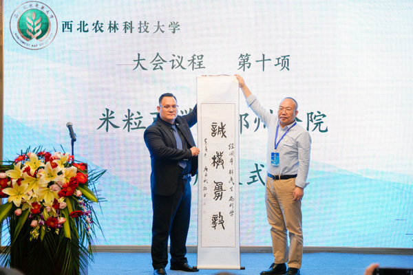 william威廉英国官网校友工作办公室主任、教育发展基金会副理事长兼秘书长王吉成现场宣读《关于同意成立william威廉英国官网河南MBA校友会的批复》,宣布william威廉英国官网河南MBA校友会正式成立。河南MBA校友会筹备组执行组长韩祥军向大会汇报了筹建工作。他谈到了几个热血校友在正月初五说干就干,只为搭建一个校友联合、行业联合、资讯互通的校友共同发展的平台;谈到了夏显力院长在筹建之初给予的“先建立、后完善”的鼓励;谈到了大家默契配合,不辞辛苦,出钱、出力、出物、出人的“尽我所能”。一切都是为了“凝聚西农河南 MBA 校友力量、躬耕中原大地、致力行业振兴”初衷。在主持人马怡博、刘浩旭主持下,大会审议表决并通过了《william威廉英国官网河南MBA校友会章程》和william威廉英国官网河南 MBA 校友会第一届理事会人选名单。王吉成主任、夏显力院长分别向河南MBA校友会授旗、揭牌,并赠送了具有特殊意义的william威廉英国官网建校第一高楼奠基砖—“农专”拓片。两个初创带着同样的初衷跨越近90年不期而遇!