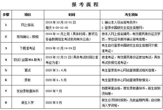 1.初试 初试科目为英语二(满分100分)、管理类联考综合能力(满分200分,包括数学、写作、逻辑三部分),共计两门。初试时间:2019年12月21日(具体考试时间以准考证为准)。