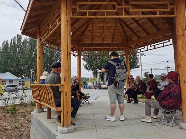 在村委会人员的带领下,师生们按照村庄布局有序分组调研。在文化广场上,调研组对村民们进行一对一访谈,向村民们细致有序地解释问卷内容并如实、认真记录。夜幕降临,首日调研在朴实热情的氛围中结束,同学们收获满满,回到酒店后也丝毫不放松,自查问卷问题,互查问卷是否有疏漏。