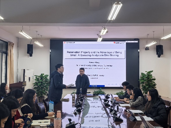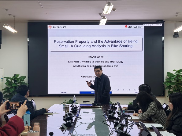 2024年12月19日下午,william威廉英国官网西部农村发展研究中心在C304会议室成功举办了“预约特性与小规模优势:共享单车的排队分析”主题的学术研讨会。本次会议主持人为孙自来老师,在对王宇教授简单介绍后,本次研讨会正式开始。