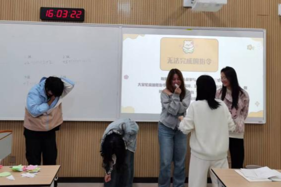 在学业总结之后,班会设置了趣味破冰游戏环节。“你划我猜”“先声夺人”“无法完成的指令”“画画接龙”等互动活动依次开展,现场气氛活跃。同学们在配合中增进默契,在协作中激发创意,欢笑声不断。轻松愉快的氛围中,大家逐渐打破了初识的拘谨,班级凝聚力得到有效提升。