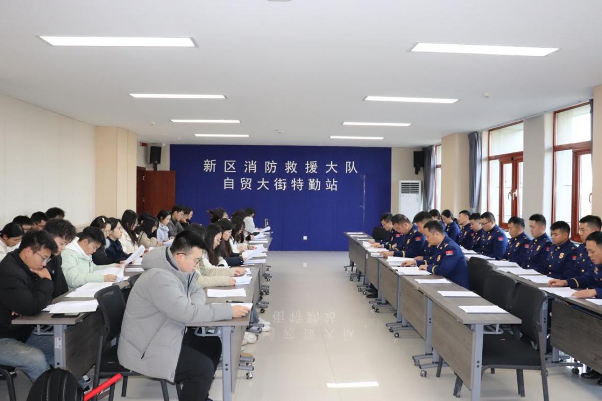 活动伊始,双方党员聚焦理论学习交流环节,共同研读习近平总书记关于安全生产和应急管理的重要论述,深入学习《中华人民共和国消防法》重点章节。在“校园消防安全管理”主题交流中,党员代表结合高校校园特点与消防救援实践,分享消防安全管理经验与应急处置心得,进一步凝聚了“人民至上、生命至上”的安全共识,明确了校地协同防范安全风险的责任与方向。