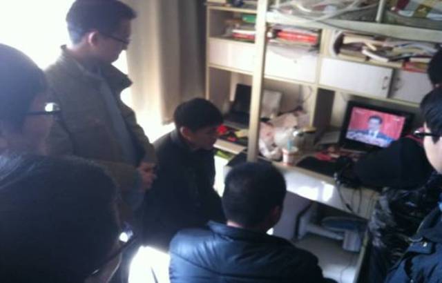 由于学校场地有限,国贸支部积极灵活收看方式,以宿舍为单位,通过电脑网络在线收看了党的十八大盛况的报到。