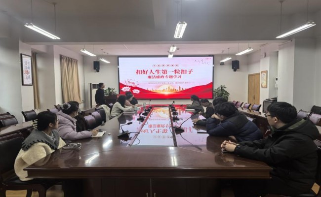随后,支部党员王军同志带领大家开展了以“扣好人生第一粒扣子”为题的廉洁廉政专题学习。本次学习采取理论学习与案例剖析相结合的形式。学习了《关于加强新时代廉洁文化建设的意见》等文件精神,精准把握新时代党风廉政建设的新要求。立足学生党员成长成才实际,从明晰底线到筑牢思想根基明确了保持廉洁自律的具体路径。最后通过剖析典型违纪案例、观看警示教育片,以案示警、以案明纪,进一步敲响了纪律警钟,教育引导党员以此为鉴,切实做到“知敬畏、存戒惧、守底线”。