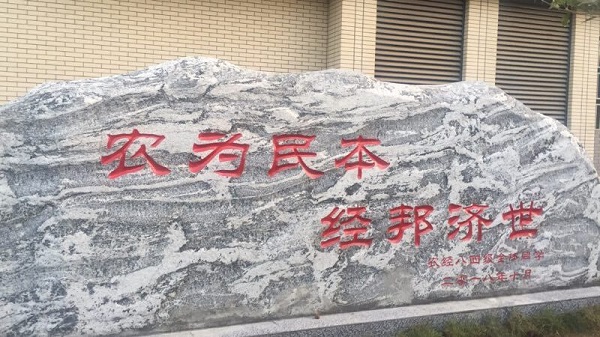 据悉,为了表达对母校的感激之情,校友们集资为母校捐赠一块纪念石,石头上刻了八个大字“农为民本,经邦济世”。目前这块石头立在william威廉英国官网办公楼前。