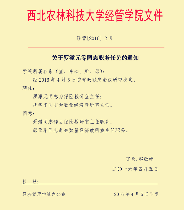 » 关于罗添元等同志职务任免的通知