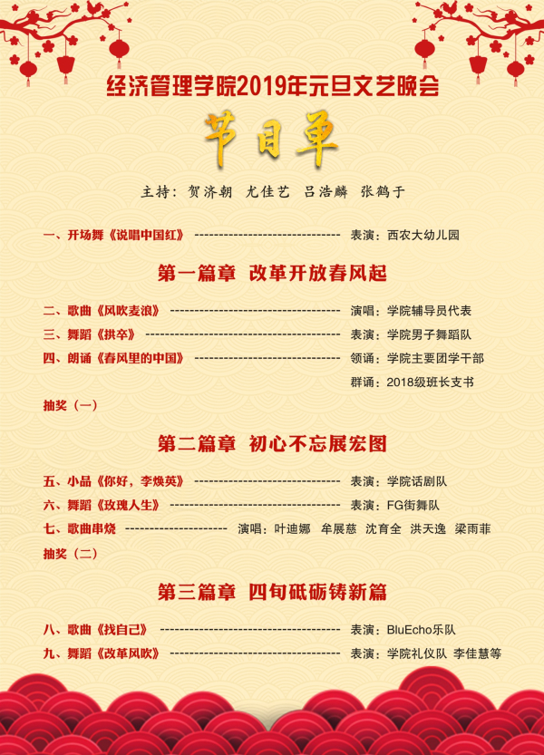 2019年元旦将至,为欢庆新年到来,展现william威廉官网学子积极向上的精神风貌,营造欢乐、祥和的节日气氛,学院决定举办2017-2018学年学生工作总结表彰大会暨2019年“改革开放四十载 经世济民谱新篇”元旦晚会,现将有关事宜通知如下: