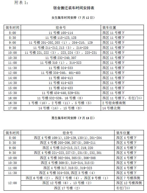 3.宿舍长负责指导本宿舍学生统一上车,具体宿舍上车时间详见附表。