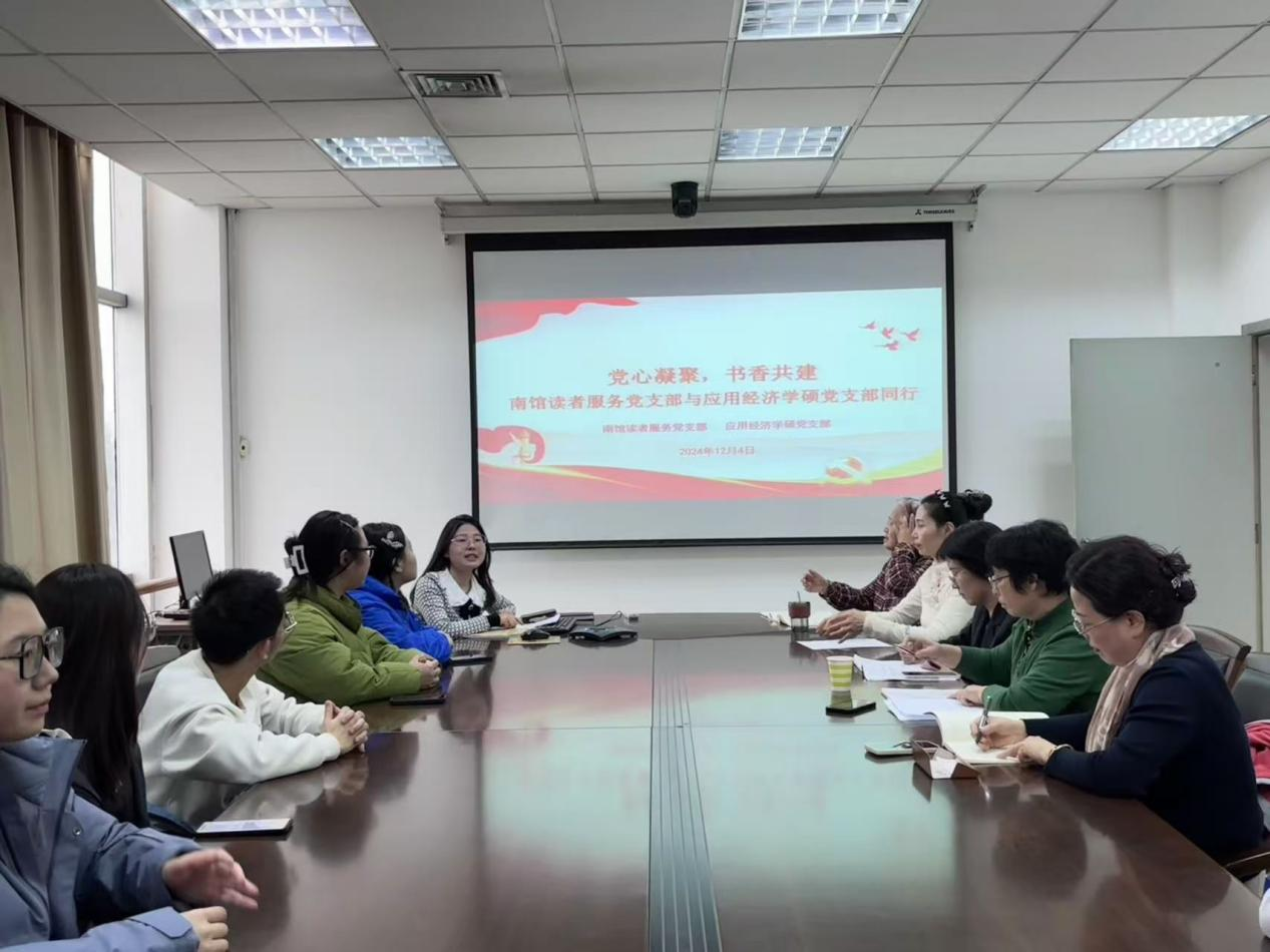 12月4日下午,“党心凝聚,书香共建”活动在南校图书馆成功举行。本次活动由南馆读者服务党支部许老师主持,应用经济学硕党支部与南馆读者服务党支部成员共同参与。活动旨在促进党支部间的交流协作,提升图书馆服务质量,同时增强党员同志的服务意识与责任感,为校园文化建设贡献力量。