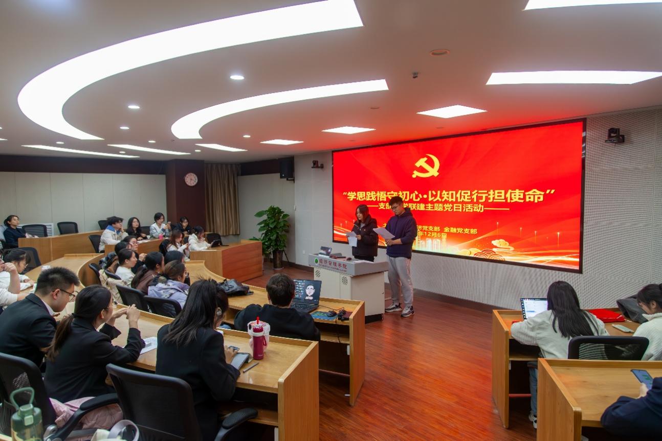 为深入学习贯彻党的二十大和二十届三中全会精神,拓展政治理论学习的深度与广度,提升党支部成员的理论素养,12月6日晚,土管、经济、金融党支部于学院C301会议室联合举办“学思践悟守初心 · 以知促行担使命”联学联建主题党日活动,来自三个党支部的党员、发展对象和入党积极分子等共计40余名同学参与。