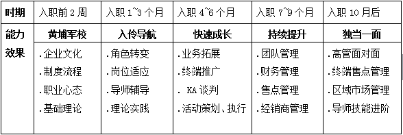岗位解析:通过一年“管培生”培训班的学习,掌握区域经理岗位工作职能;